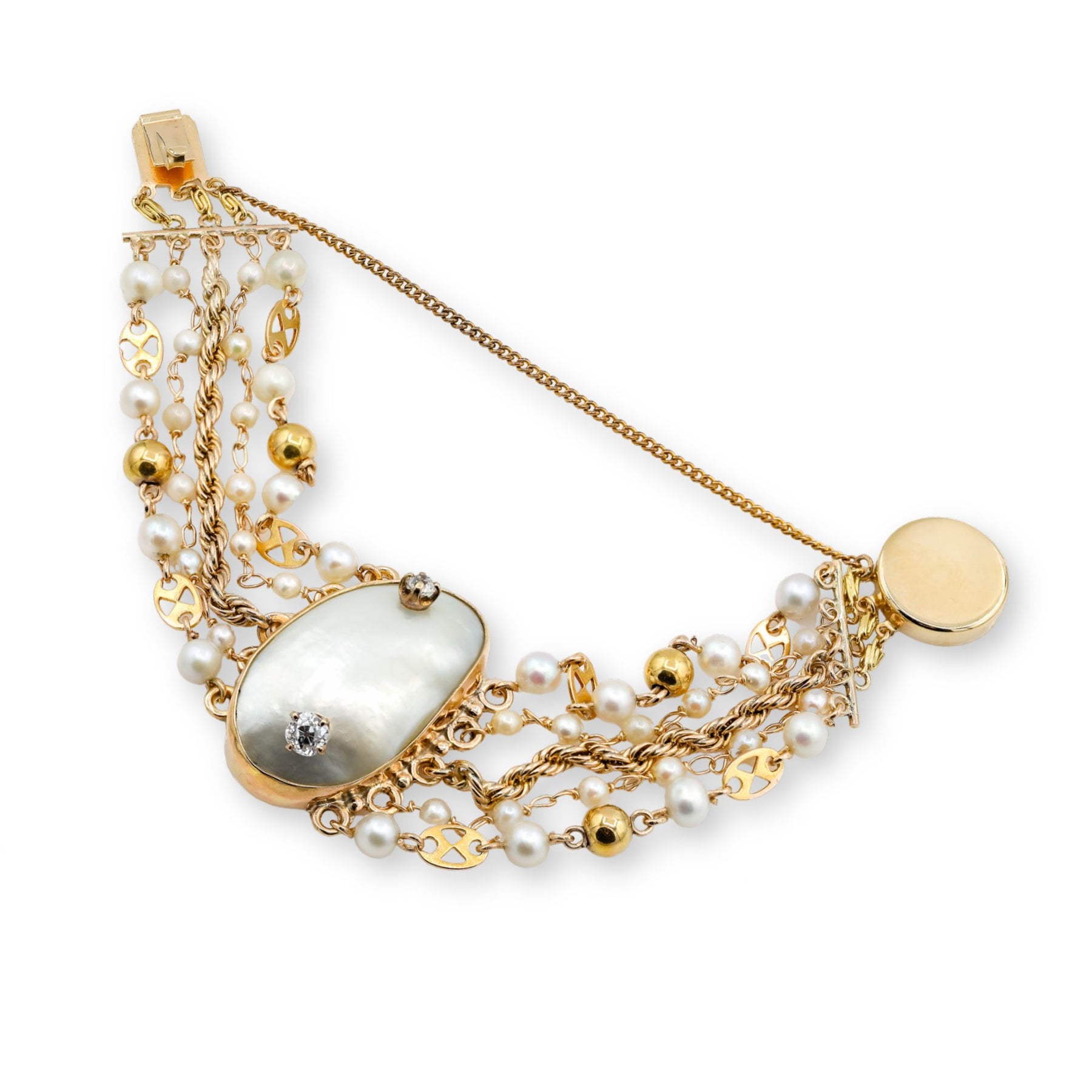 Estate Baroque Pearl & 5-Row Bracelet 14KY