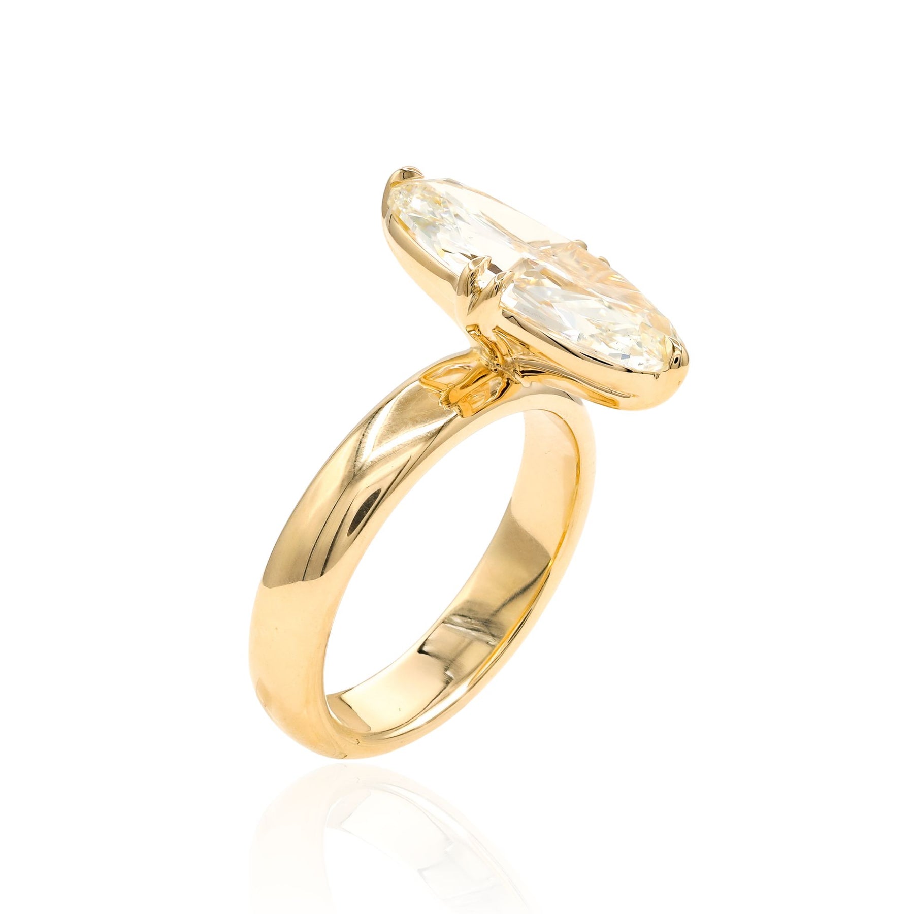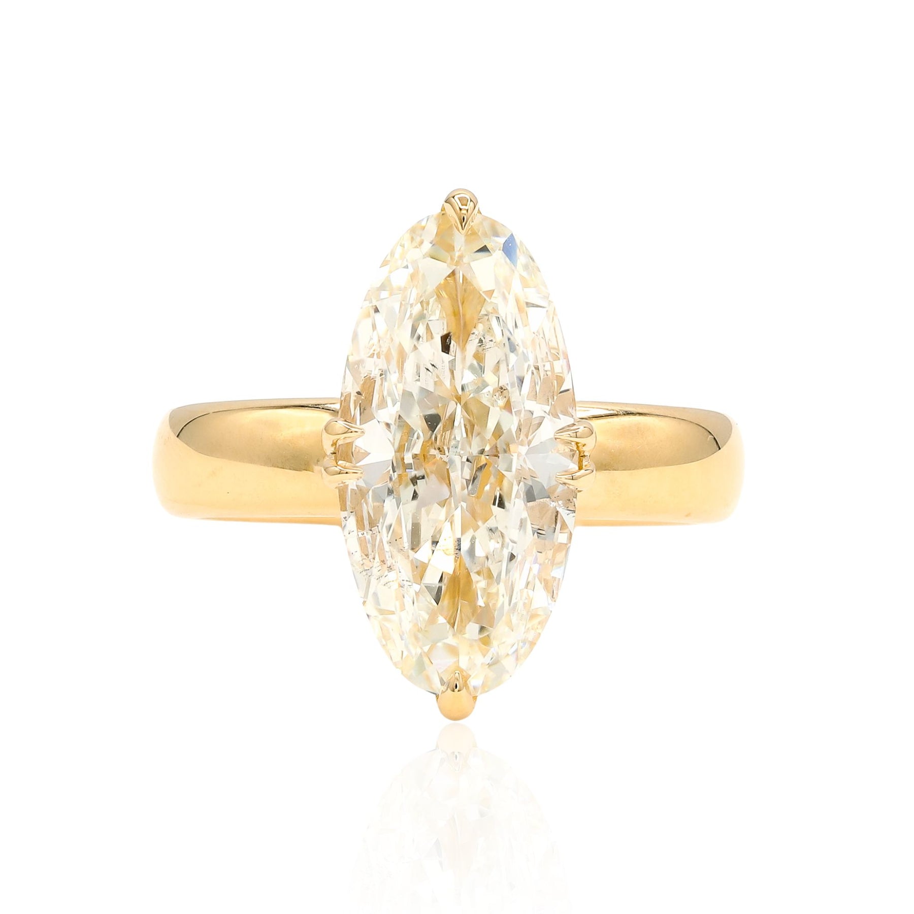 14K YELLOW GOLD 4.02CT MOVAL ELONGATED OVAL DIAMOND SOLITAIRE ENGAGEMENT RING R683VY-01