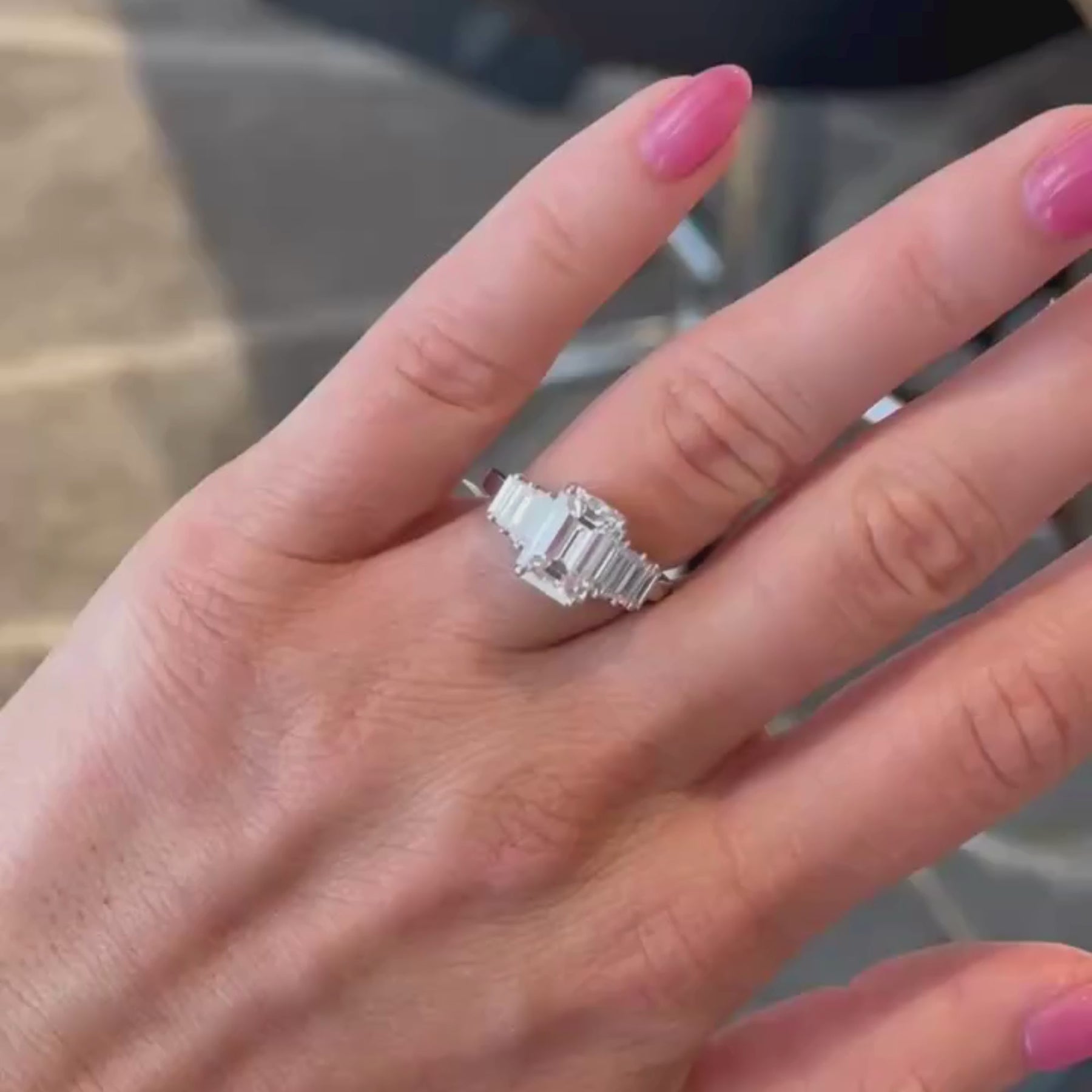 PLATINUM 3.00CT EMERALD-CUT DIAMOND ENGAGEMENT RING WITH BAGUETTE SIDE DIAMONDS