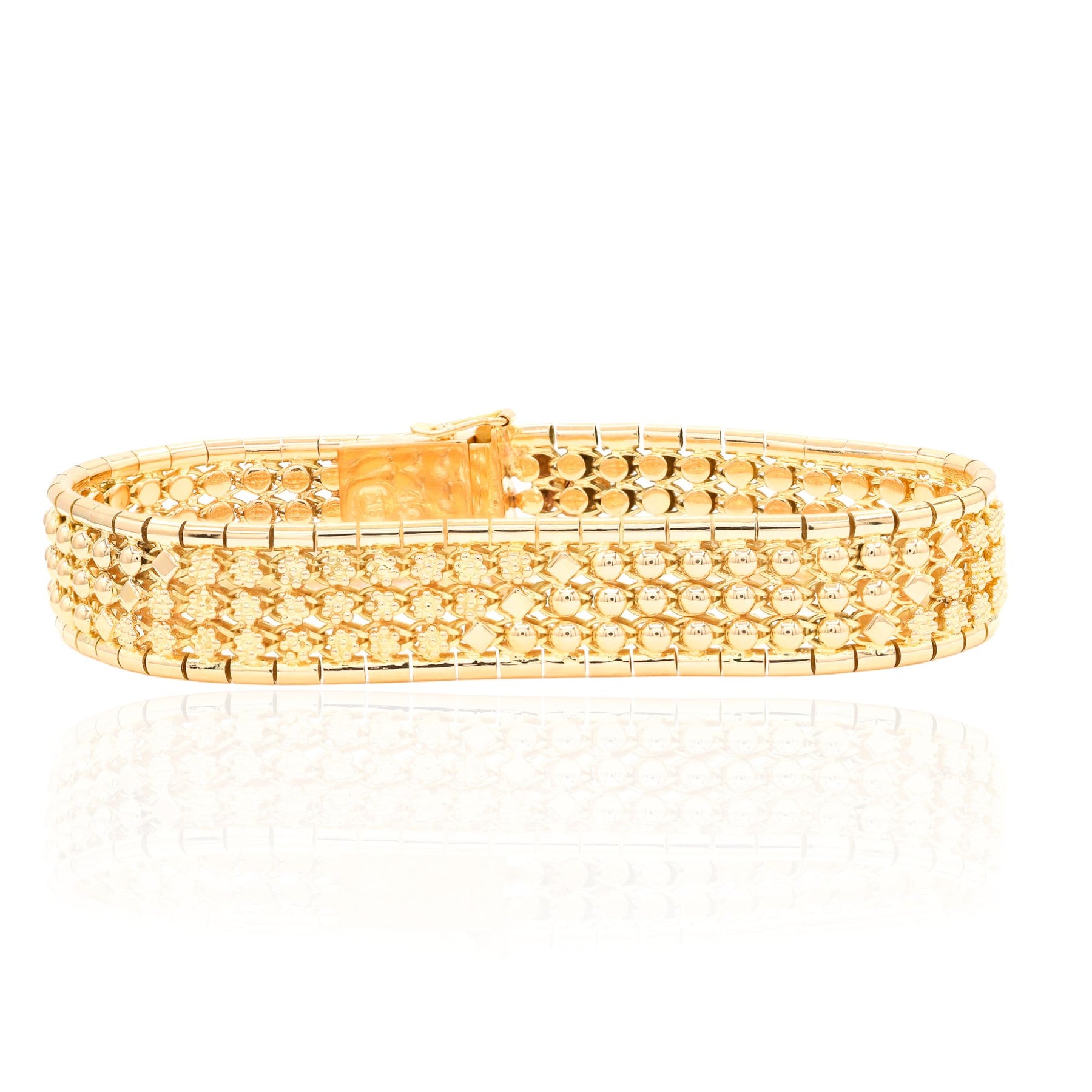 ESTATE 18K YELLOW GOLD GEM ACCENTED WIDE LINK BRACELET