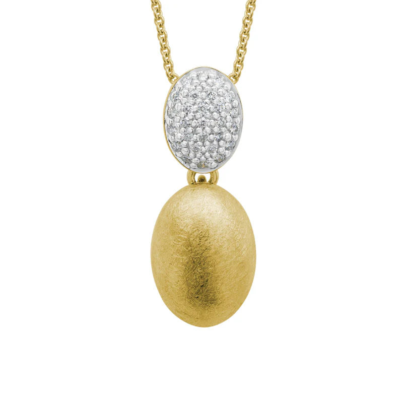 14K yellow gold 16-18 inch adjustable satin and pave diamond bead cable chain necklace totaling-0.10ctw