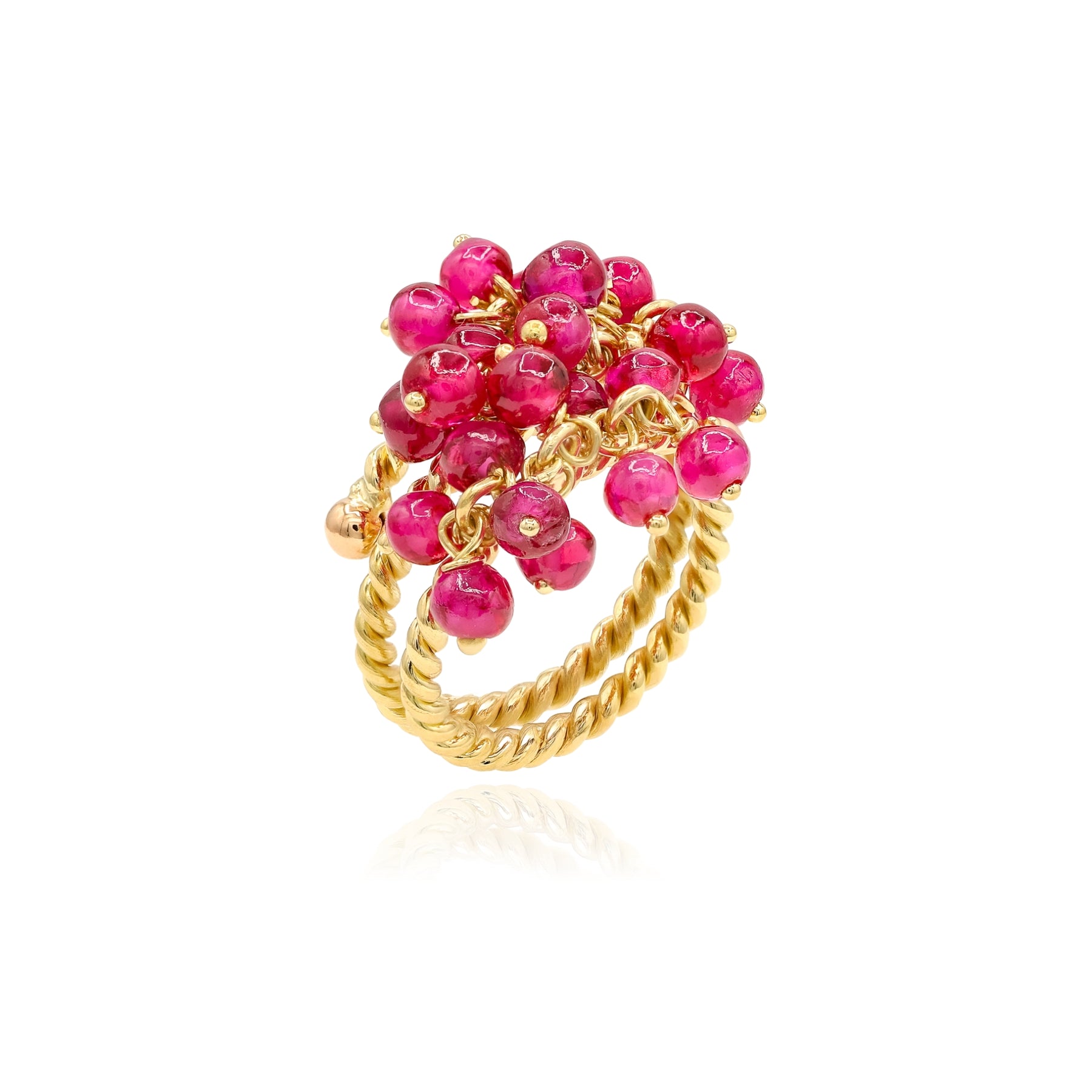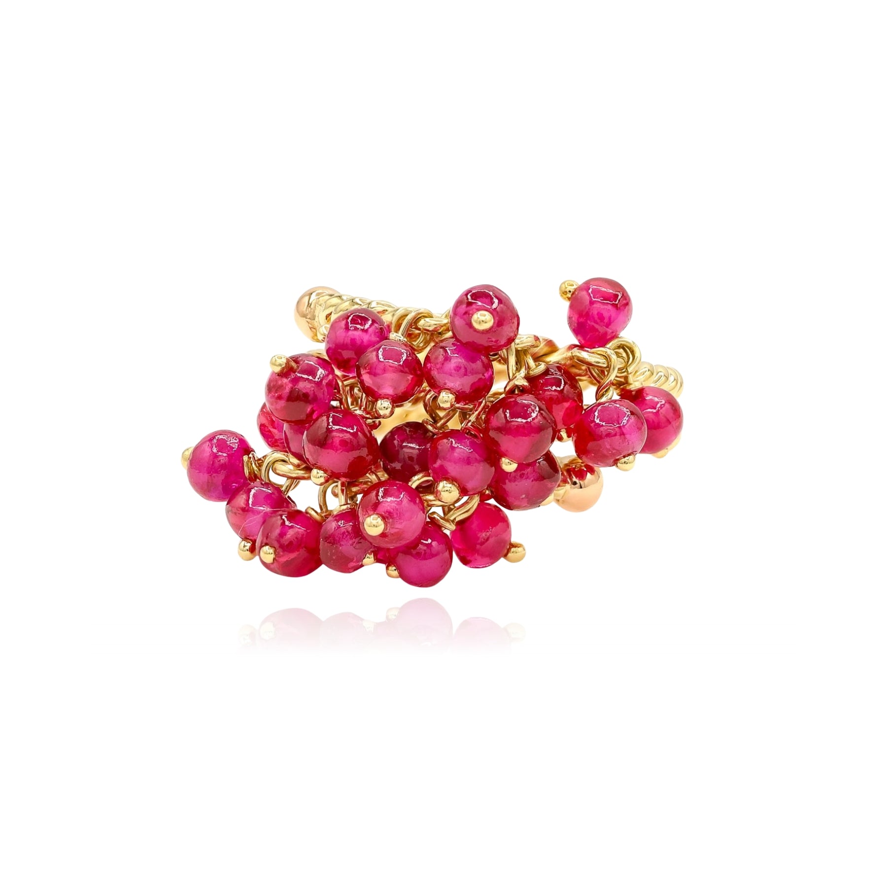 Estate Ruby Bead Fringe Wrap Ring 18KY