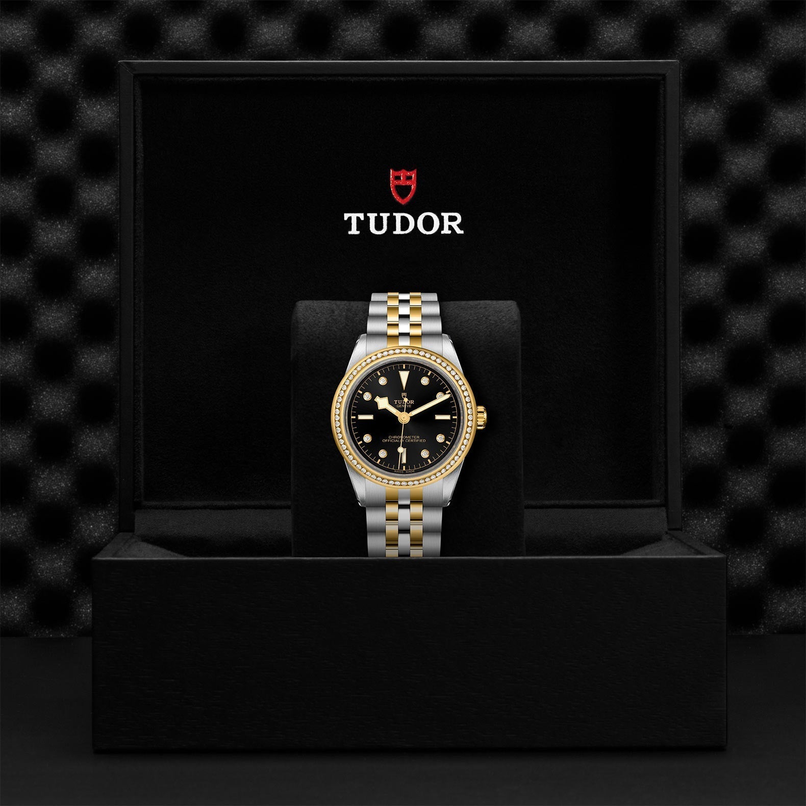 Winding Crown | Screw-down winding crown with the TUDOR rose in relief. Steel covered by a 0.1mm yellow gold cap |